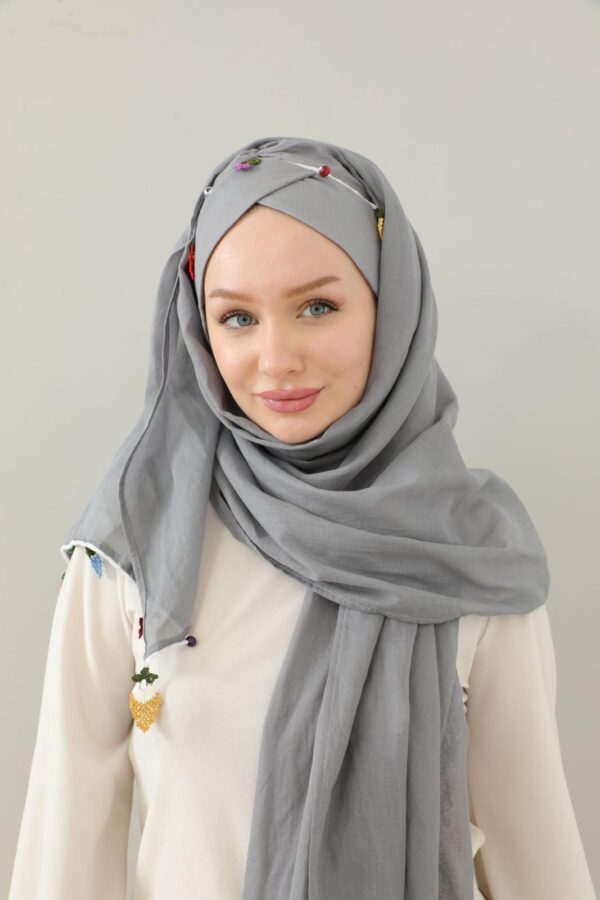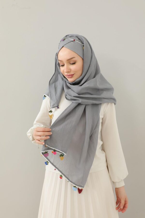 El işi Oyalı %100 Pamuk Kendinden Boneli Topuzlu Mıknatıslı ŞAL