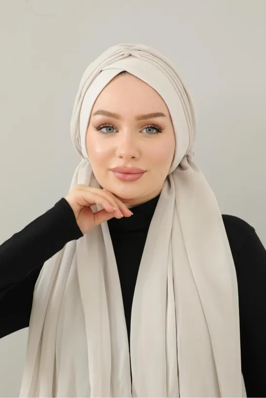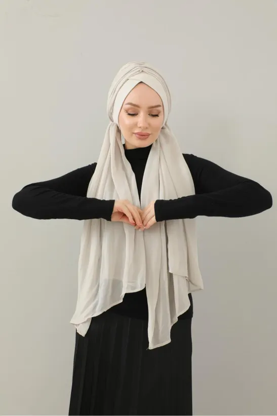 Özel El Işçiliği Şifon Kumaş Şallı Uzun Hazır Türban – Şallı Model