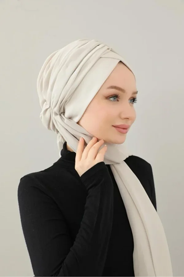 Özel El Işçiliği %100 Pamuklu Şallı Uzun Hazır Türban – Şallı Model