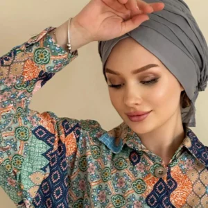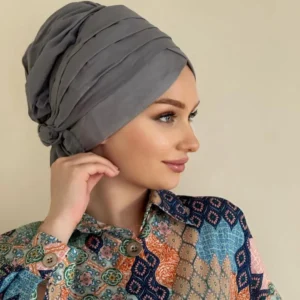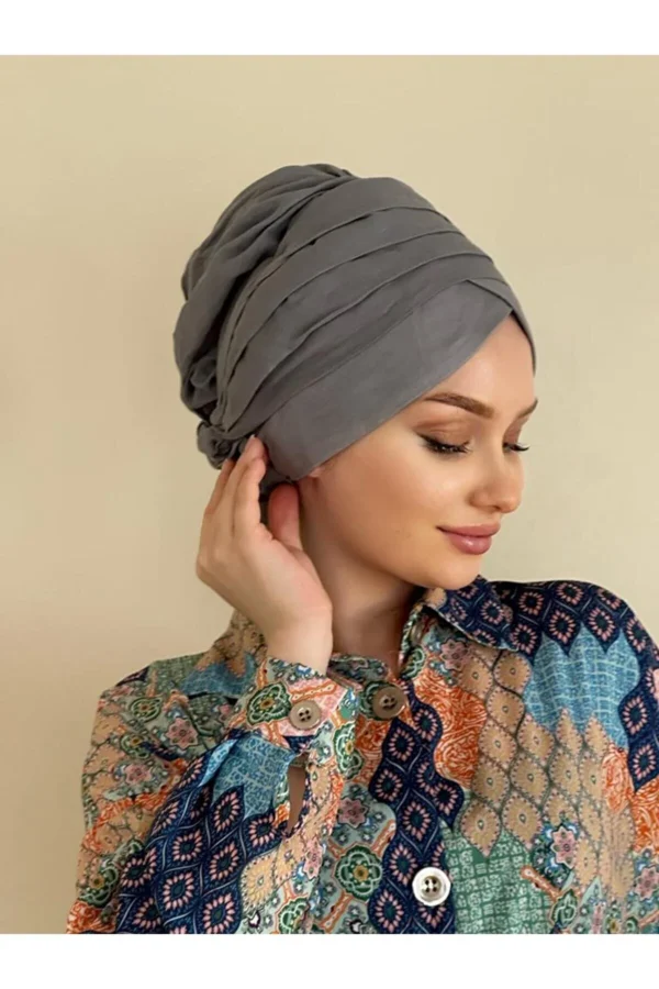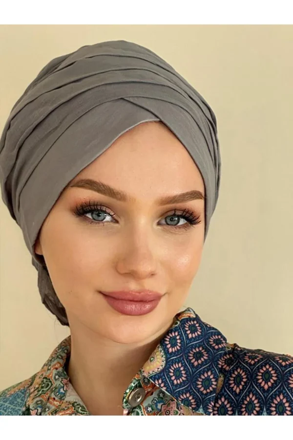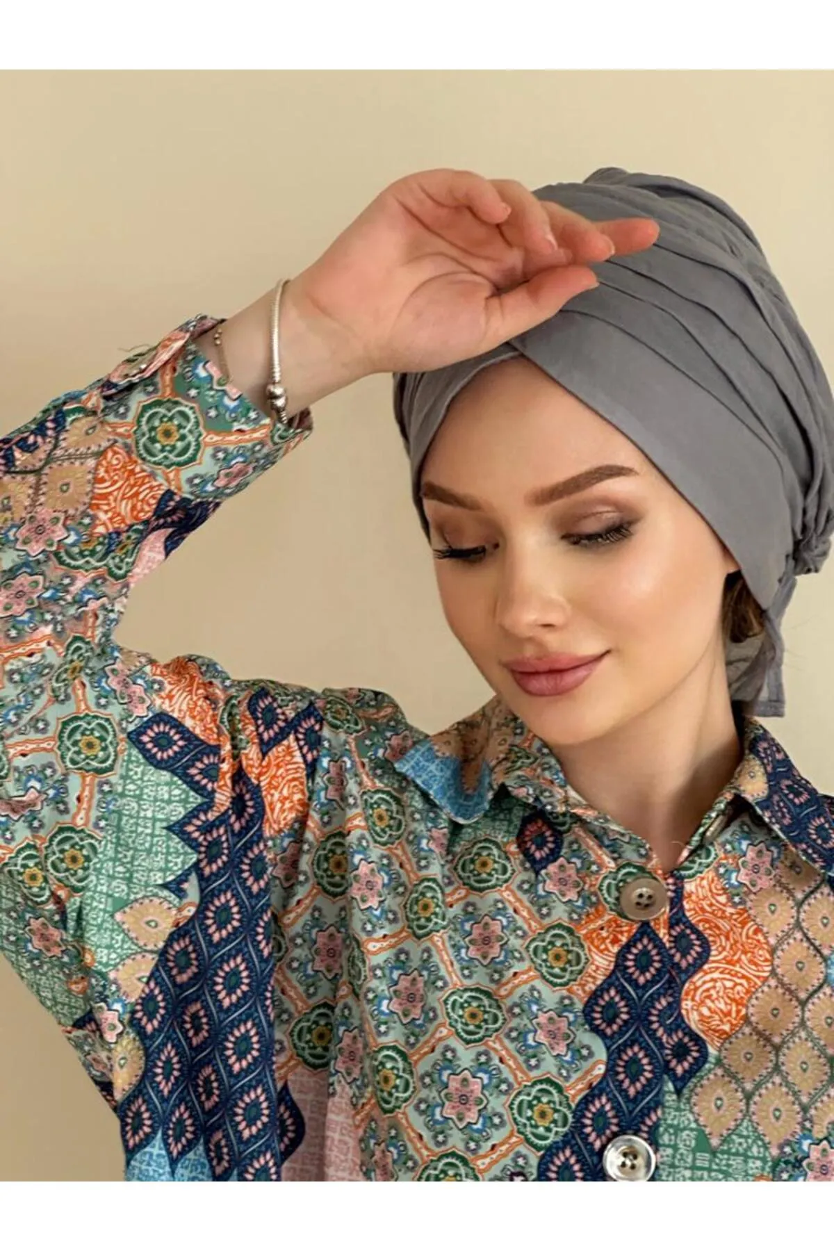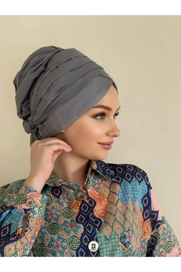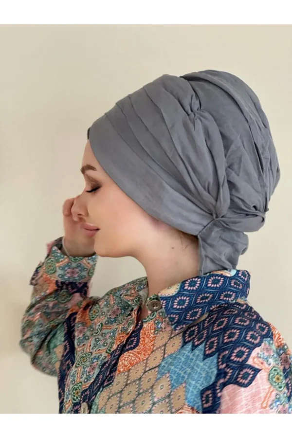 Özel El Işçiliği %100 Pamuklu Tesettür Şal – Kendinden Boneli Hazır Türban – Katlamalı Model